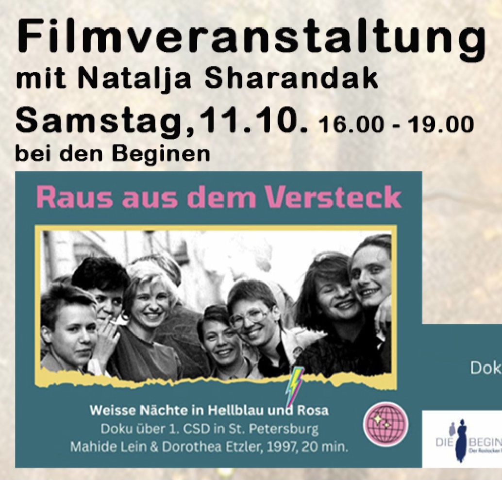 Filmveranstaltung bei den Beginen – Rostock Date & Time Sa., 11.10.2025 16:00 - 19:00 Veranstaltungsort Heiligengeisthof 318055 Rostock Kategorien queeres Kino Die Rostocker Uferfrauen zeigen zwei Filme. MEHR DAZU